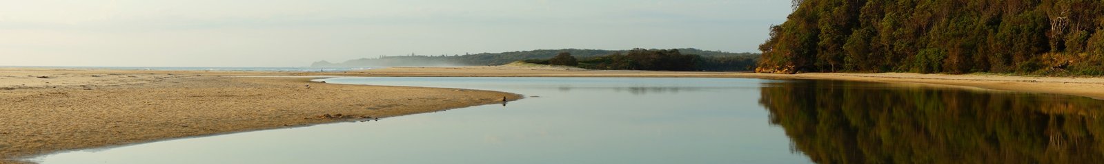 Millba changes all the time. She runs up and down this piece of coast, sometimes forms lagoons, sometimes grows two mouths, and is occasionally dammed by the beach.