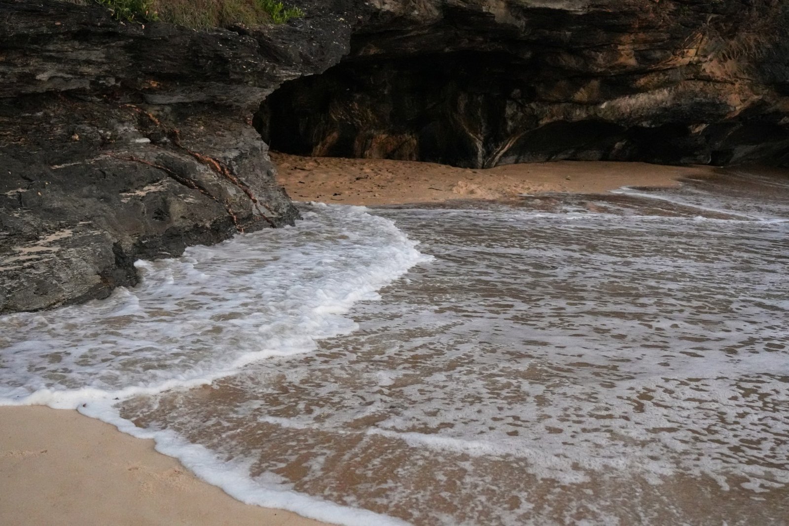 The loosened sea pushes its way towards Woman’s Cave. Waves ride the curved wall, stripping the robust sandstone one grain at a time, giving a polish.
