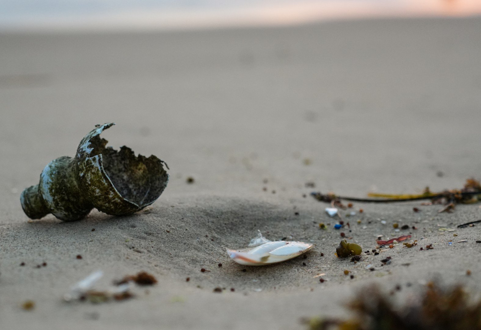 This beach assembled miniature wreckage, bottle tops, a straw, plastic shards which I collect and bin. Look closely, a small blue plastic piece lies by the jagged plastic bottle. How long would I last watermarked? With my face and fingerprints recognisable?