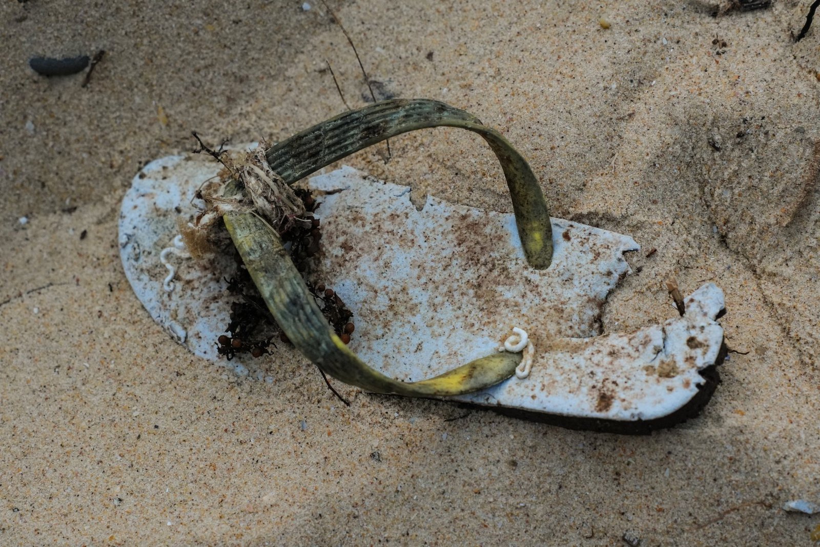 There a contour for a child’s foot, now worn by tubeworms that tie themselves in knots. Manufactured from materials like Ethylene Vinyl Acetate (EVA) foam, polyurethane, or rubber – all petroleum products.