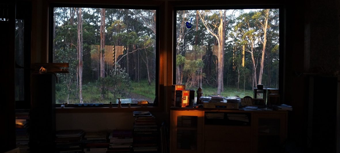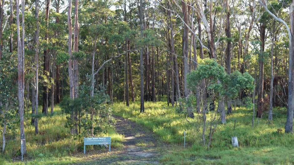 Our house backs onto Jagun Nature Reserve (pronounced Jah-goon in Gumbaynggirr, meaning ‘home’). The reserve is a bundle of trees and tree stumps, orchids, vines, birds, insects, reptiles and mammals. In our first year w recordedjust over a 100 species of birds. It is regrowth forest oversupplied with stumps standing on poor sandy soils with clay substrates. It regrows slowly; it takes 50 to 60 years for hollows used by parrots, possums and gliders to form. We won’t be here that long. Since we’ve been here we’ve heard one Powerful Owl and one male koala squealing like a speared pig in search of a mate here.