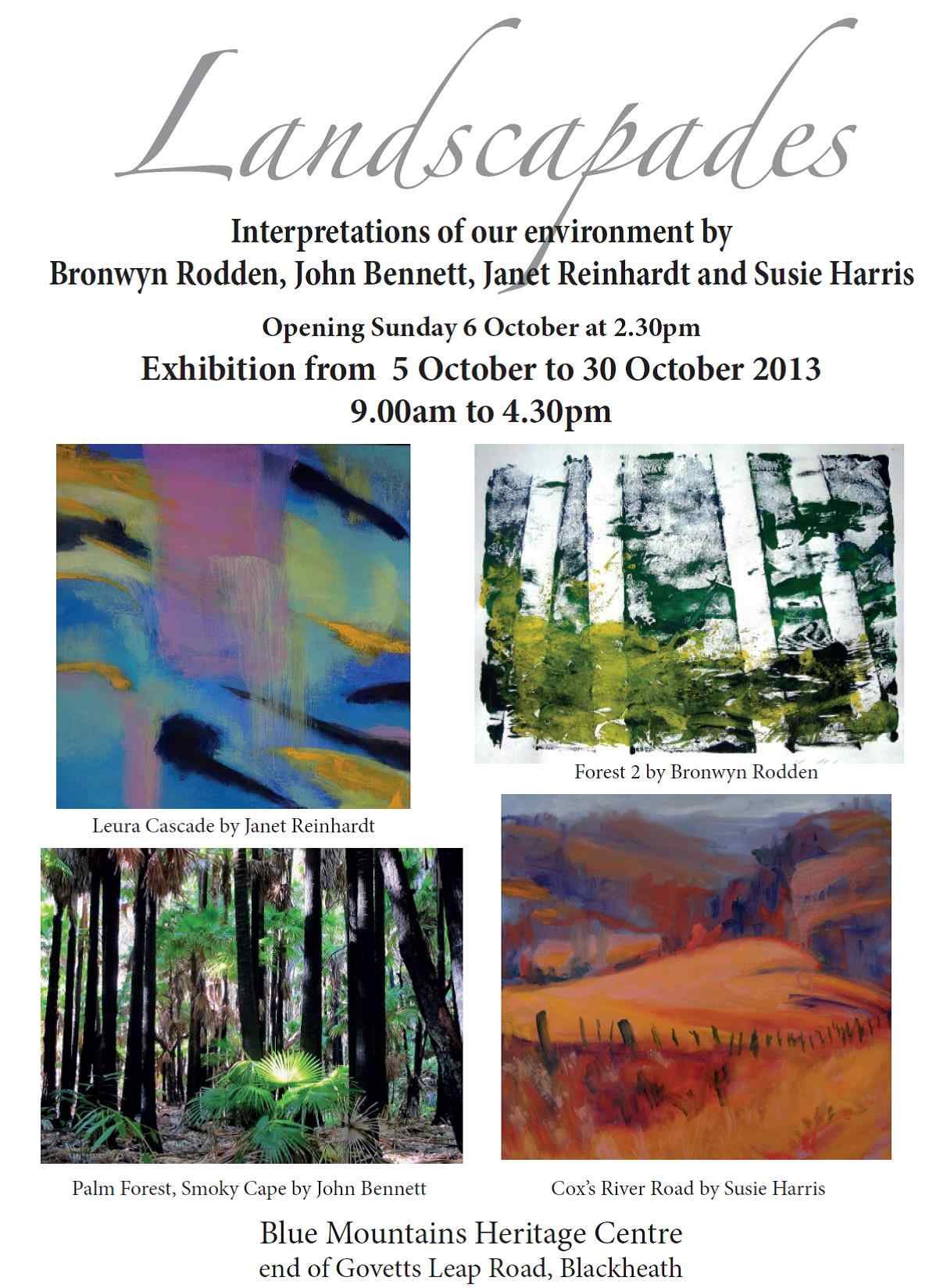 ‘Landscapades’ Exhibition @ Blue Mountains Heritage Centre, Govetts Leap Rd, Blackheath, Launch 2:30 Sunday 6th Oct