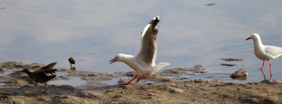 but so do two Silver Gulls. It bravely tries for a feed but they see it off.