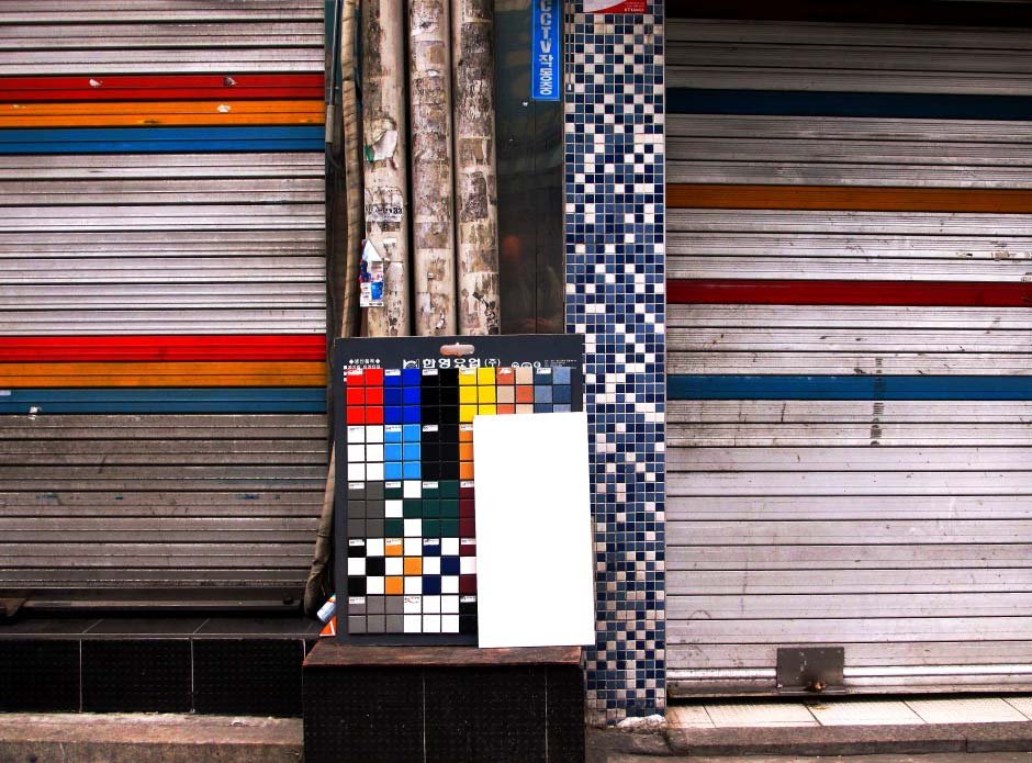 beside a water garden facing the flat wastelands of Incheon.
